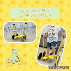 粗大運動プログラムで、バランスペダルを使ってプログラムを進めました。 指導員がサポートしながらペダルの上に立ち、バランスをとりながらお部屋の中を真っ直ぐに進みます。 バランス感覚を鍛えることで、運動の基盤となり、体幹を鍛 […]