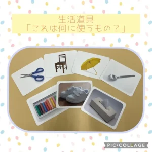 生活道具プログラムでは、名詞カードを使用して進めていきます。 指導員から「これは何に使うもの?」と質問され、どのように使うものなのかを言葉で説明するという流れで進めていきます。 この〈詳細の説明〉では、言葉で表現すること […]