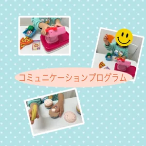 おままごとの玩具を使用して、コミュニケーションプログラムを行いました。 子どもたちはそれぞれお店屋さん役、お客さん役になり、指導員やお友達と「いらっしゃいませ」「どうぞ」「お願いします」等の言葉のやり取りを行い、遊びを通 […]